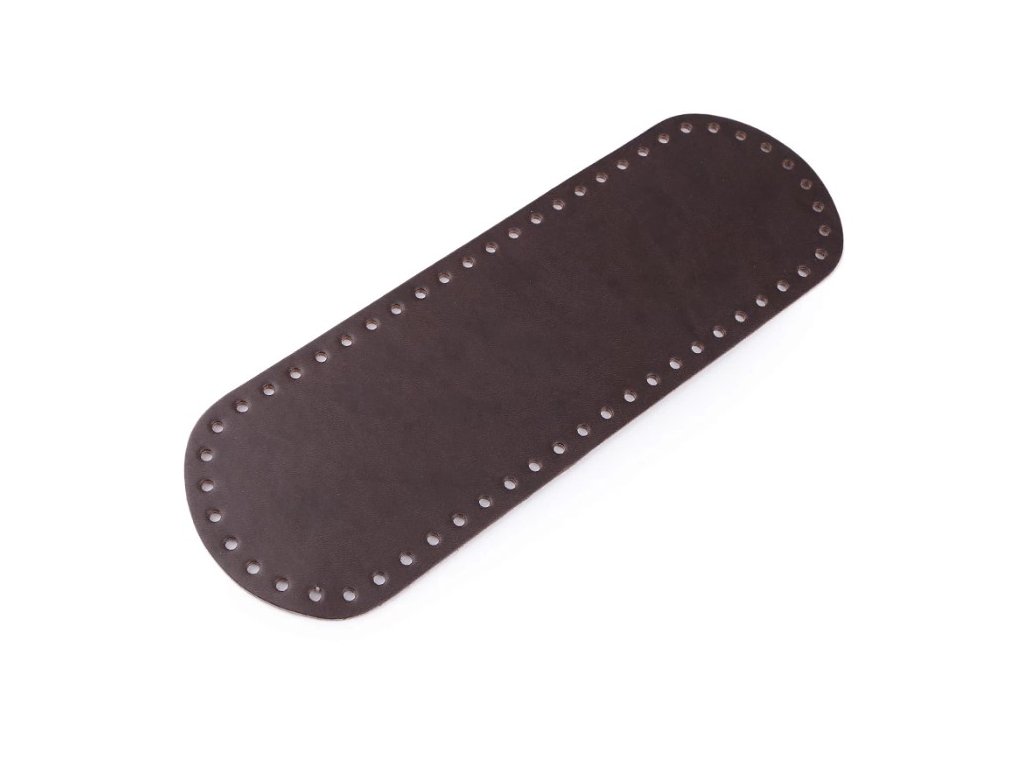 Dno z eko kůže o rozměrech 12x36cm, které slouží jako základna pro háčkované kabelky, batohy či tašky. Po obvodu jsou 3mm otvory usnadňující háčkování. Rubová strana se může barevně lišit dle nastavení vašeho pc/mobilu.