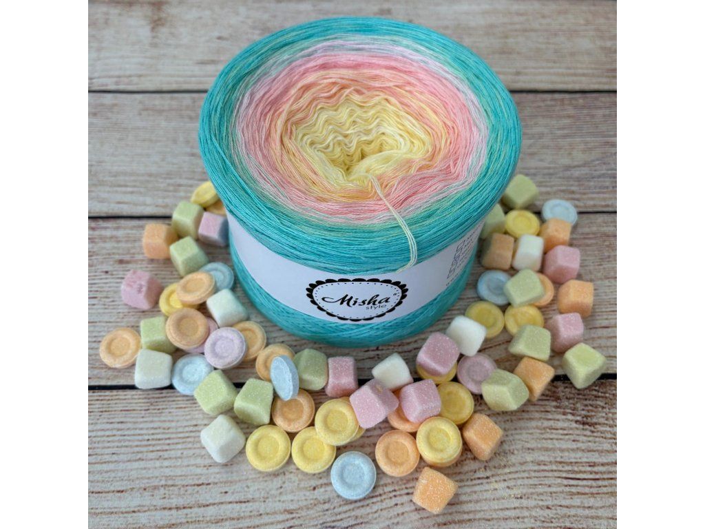 Barevná klubíčka Mishastyle jsou ručně navíjená úhledná klubíčka ze tří vedle sebe jdoucích nitek (tzv. 3nitka). Svou práci můžete začít háčkovat/plést od středu či od kraje klubíčka. Příze je vhodná pro háčkování i pletení šátků, šál, sukní, šatů, halenek, ale i dek do kočárku atd. Doporučuji prát na jemné praní max. na 30 stupňů (bez ždímání) a následně sušit ve vodorovné poloze případně pověšené s vypnutím.